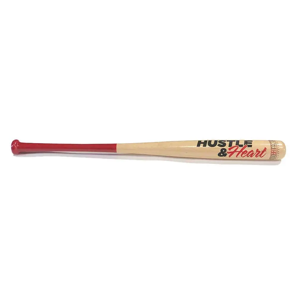 This beautiful Maple Trophy Bat has been engraved and hand painted with a Hustle & Heart Design.